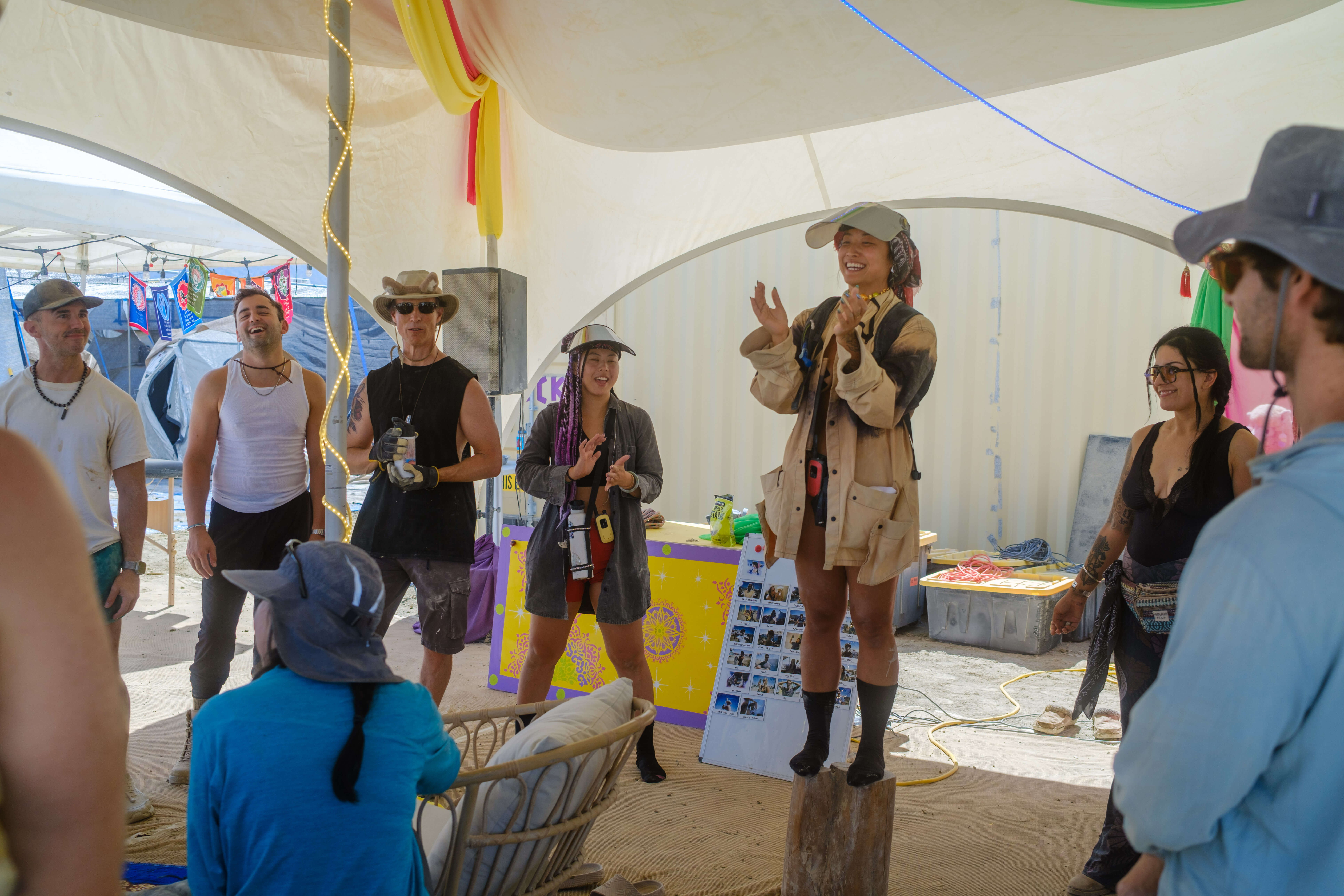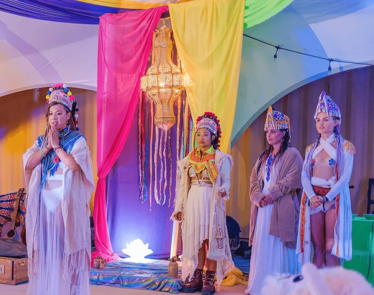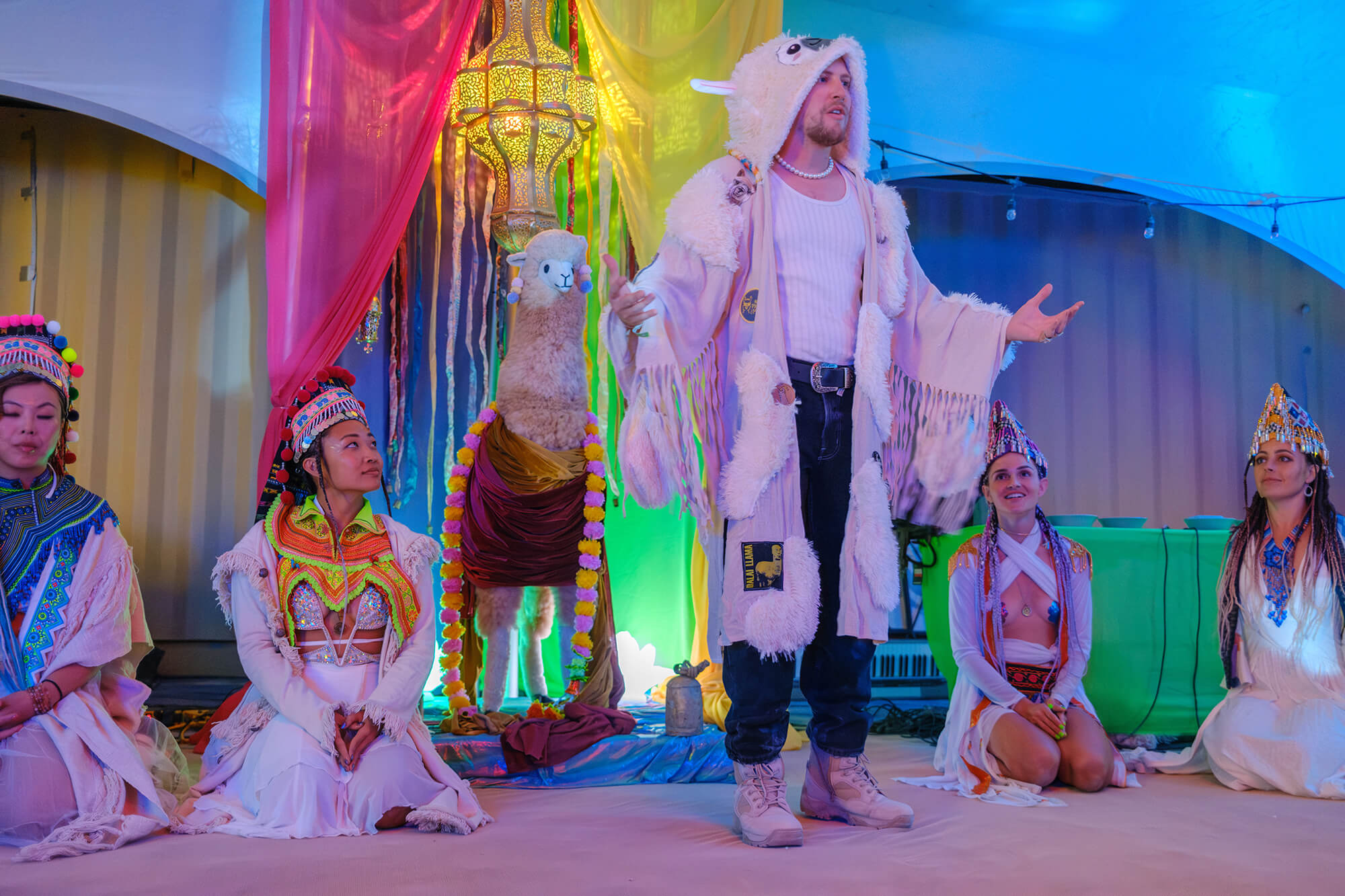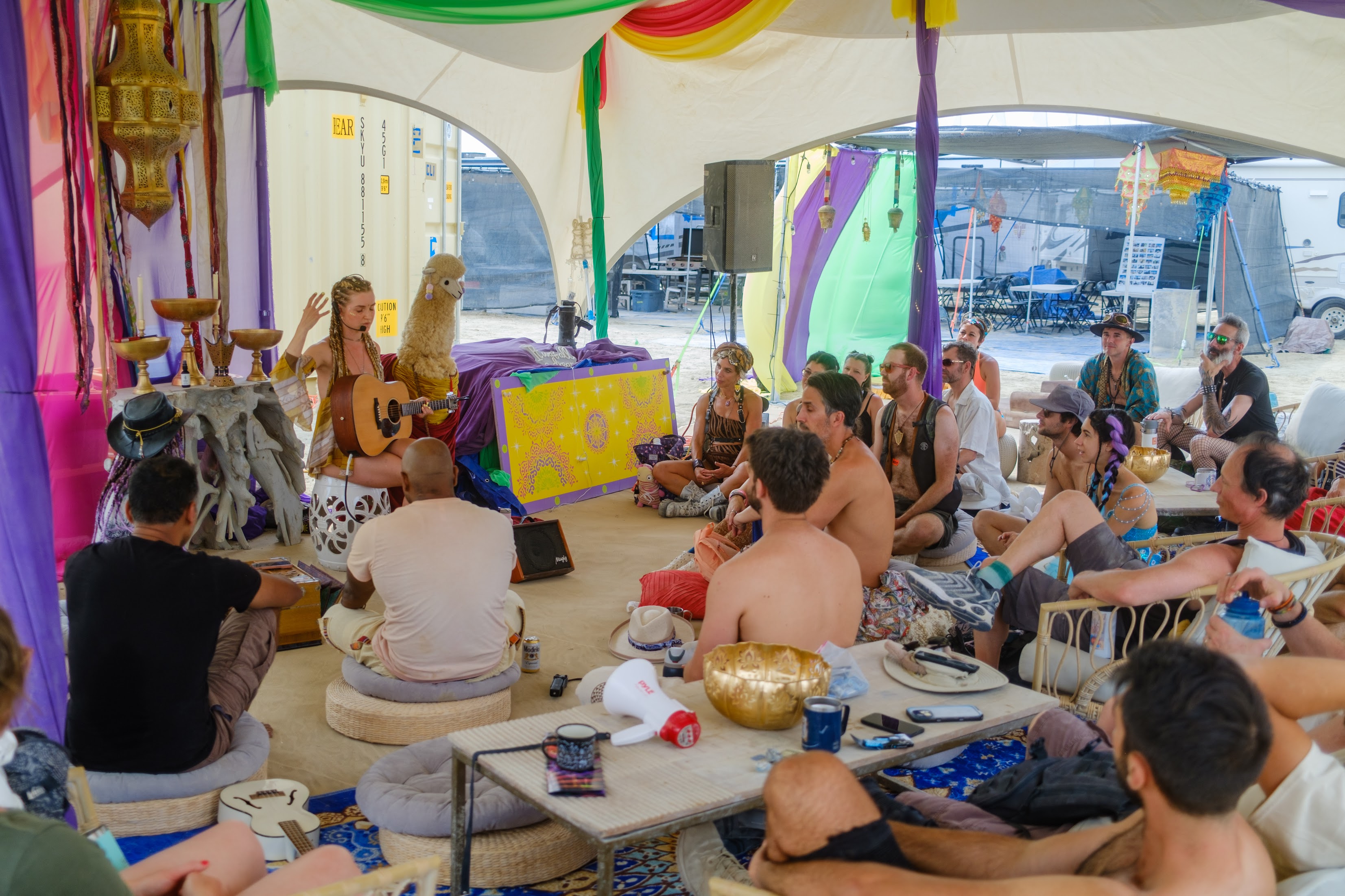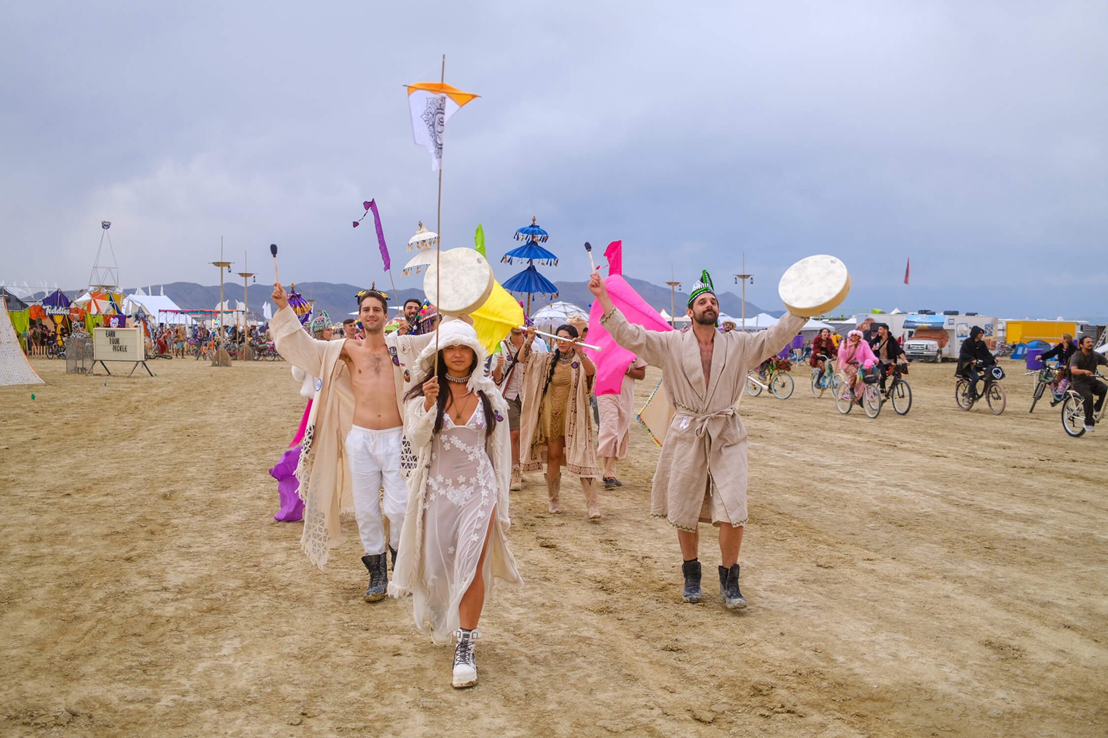 We make our own robes, build the temple before the gates open, and run sound healings, drum circles, and dance parties that keep the cosmic frequency in balance.