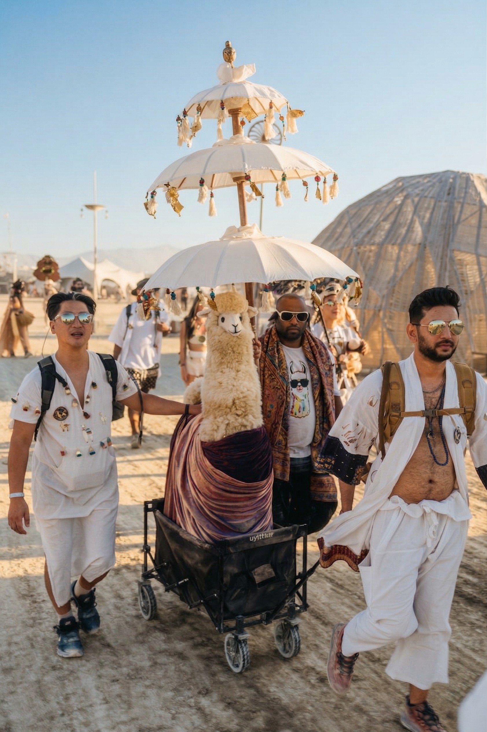 Once a year, we carry the Dalรญ Llama across the playa to the Temple โ because deities donโt walk, they arrive. What starts as a procession becomes something else entirely โ part ritual, part letting go, part moment you didnโt know you needed.