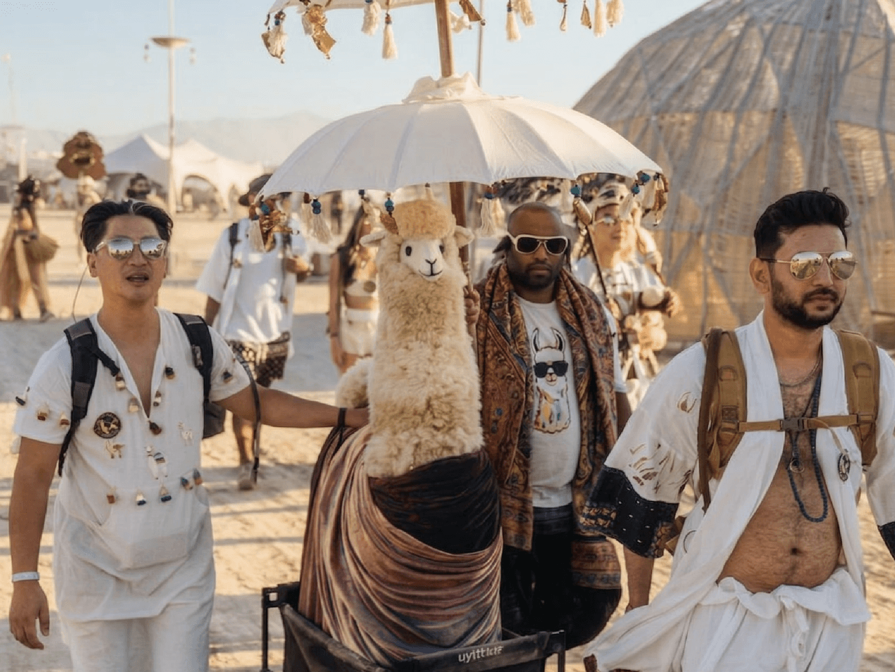 No passengers. Every llama carries their own weight and each other's. From pre-burn prep to the last night on the playa โ the cosmic holds because you hold your piece.